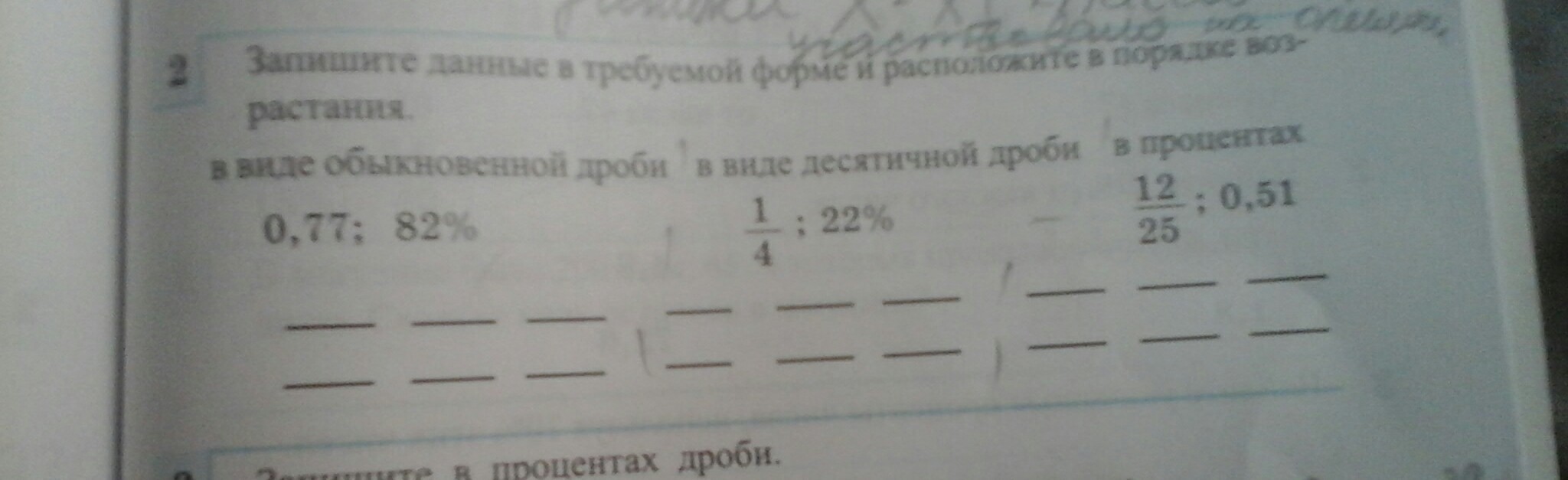 ПОМОГИТЕ ОЧЕНЬ ОЧЕНЬ НУЖНО! . Запишите данные в требуемой форме и расположите в порядке возрастания. ...В виде обыкновенной дроби 0,77; 82 процентов . . В виде десятичной дроби 1/4 ; 22 процентов. . В процентах. 12/25 ; 0,51.