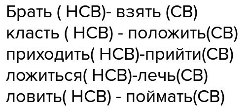 Брать, класть, приходить, ложиться, ловить.