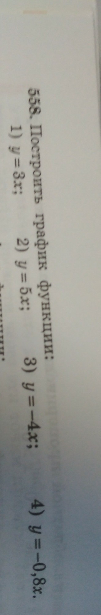 Ну смотри, к первой функции берёшь х=1, следовательно, у=3*х=3*1=3. Берёшь х=2, следовательно, у=3*х=3*2=6. Аналогично другие берёшь и подставляешь
