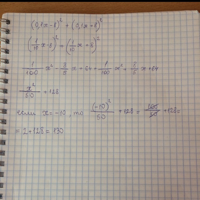 = (0,1х)² - 2*0,1х*8 + 8² + (0,1х)² + 2*0,1х*8 + 8² =