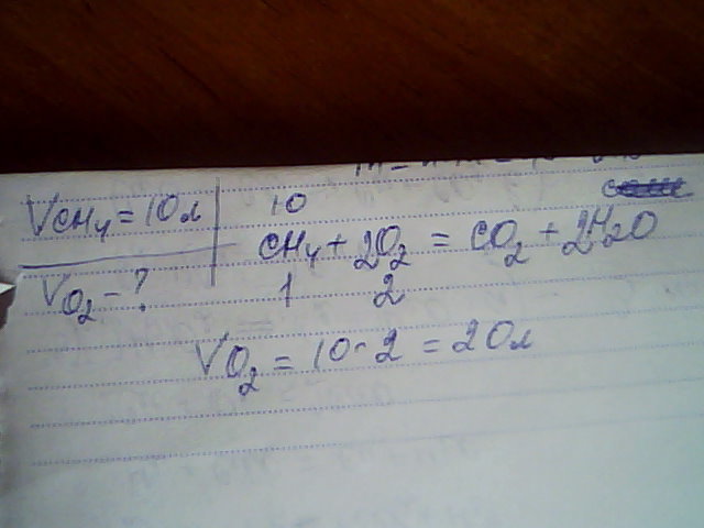 Какой объем кислорода потребуется для сжигания 10 л метана, если все объемы измерялись при одинаковых условиях?