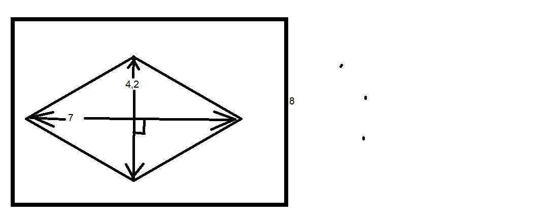 из квадрата со стороной 8 вырезали ромб с диагоналями 4,2 и 7 . найдите площадь получившейся фигуры