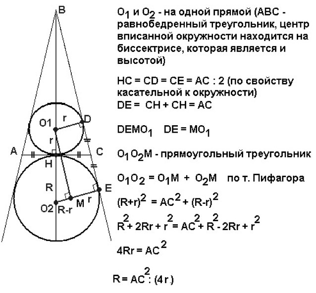 Основание АС равнобедренного треугольника ABC равно 12. Окружность радиуса 9 с центром вне этого треугольника касается продолжений боковых сторон треугольника и касается основания AC. Найди радиус окружности, вписанной в треугольник ABC.