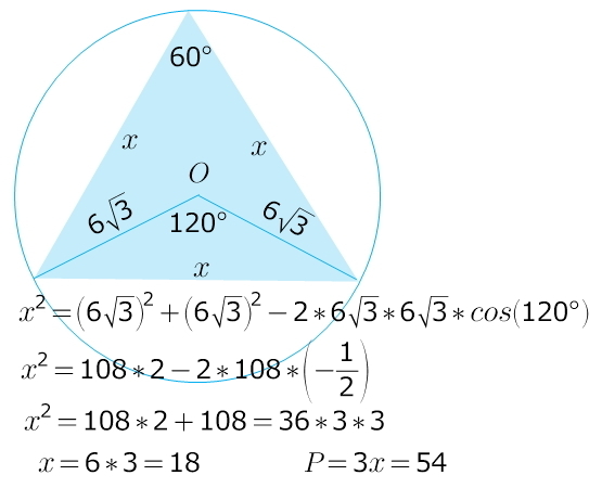 описанного вокруг равностороннего треугольника =6√3 см.Найти периметр треугольника.+РИСУНОК ПОЖАЛУЙСТА