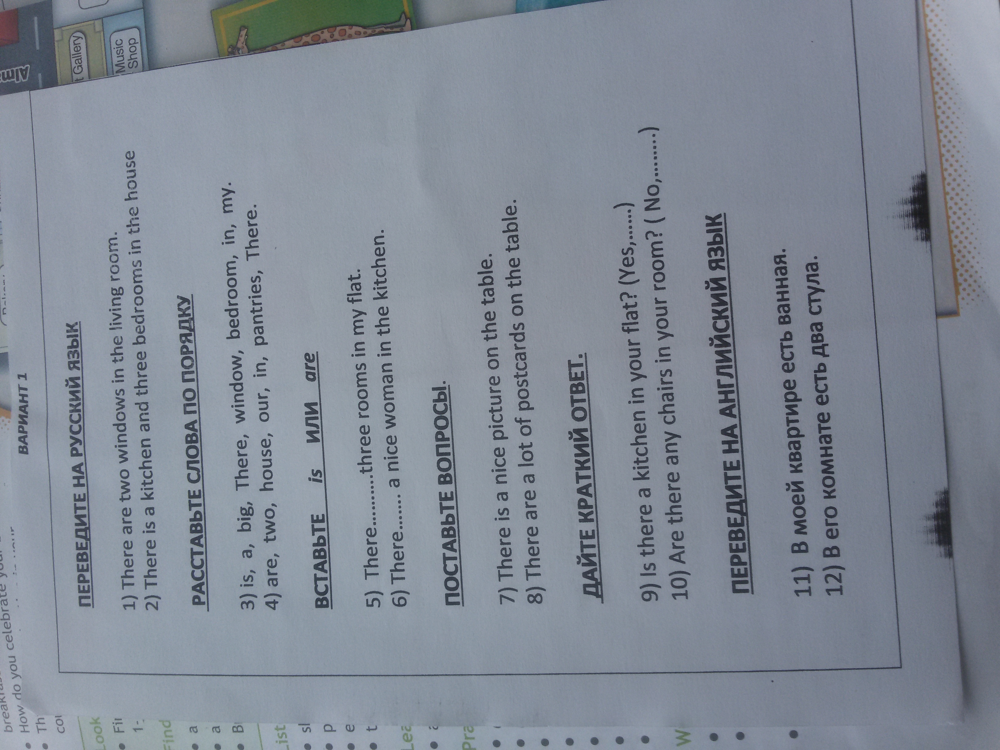 Последнее. In my apartament has a bathroom. In his room there are two chairs.