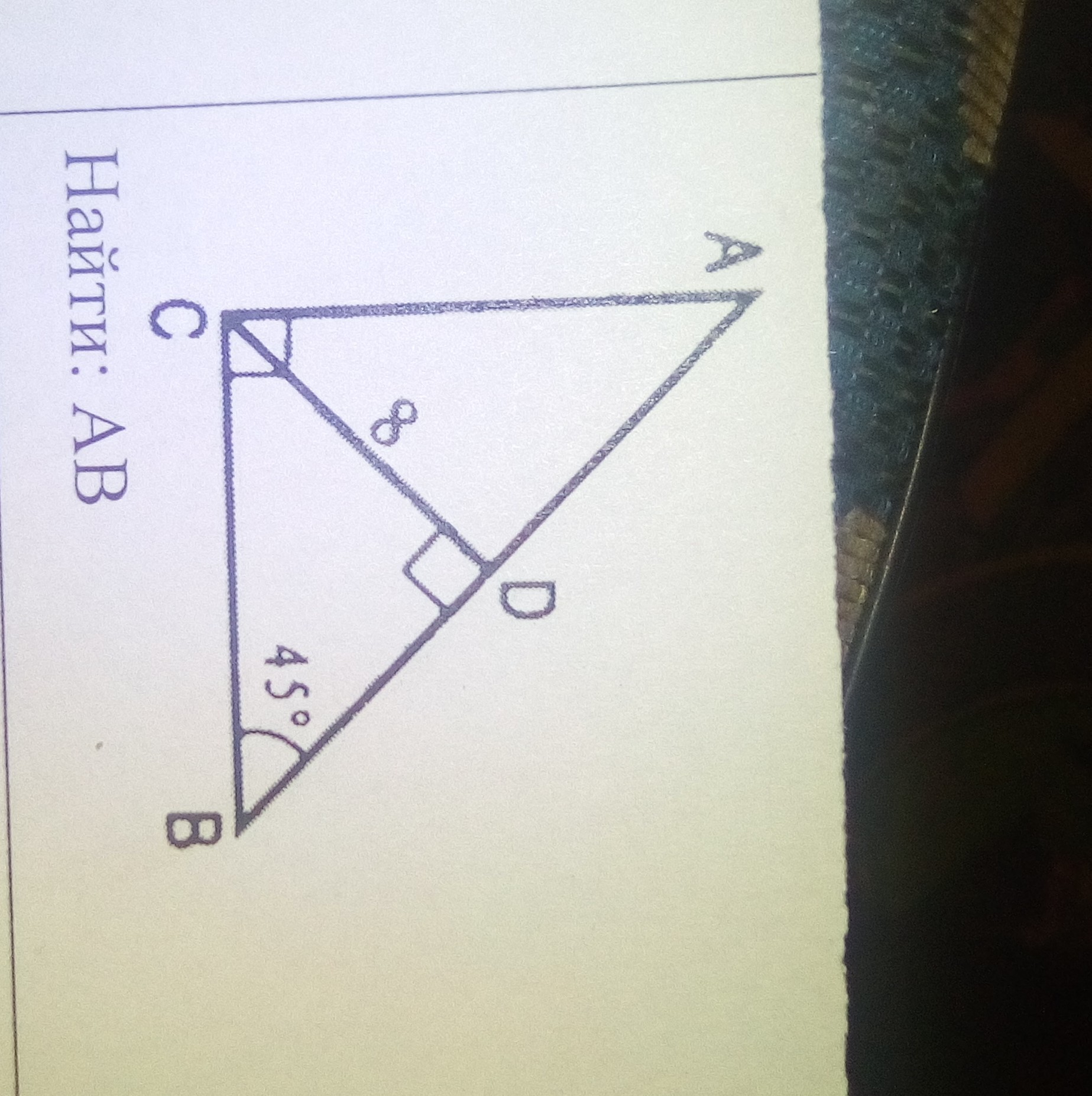 CD - делит сторону по полам, а значит и угол С тоже: 90:2=45 - угол DCB. Угол DCB = Углу CBD =45, если углы при основании равны, значит и боковые стороны тоже равны => CD=DB=8. AB = DB*2= 8*2=16. Ответ: 16. Надеюсь понятно))