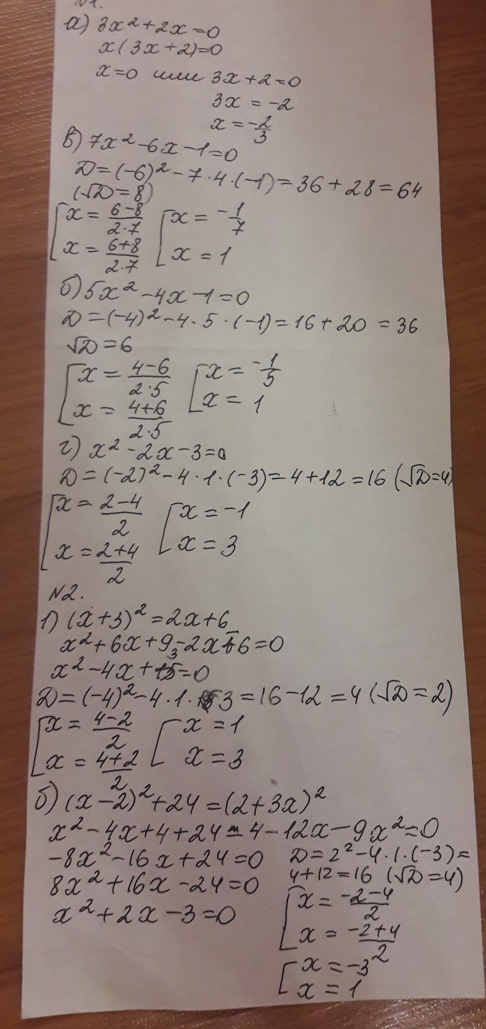 1)3х^2+2х=0. в)7x^2-6-1=0