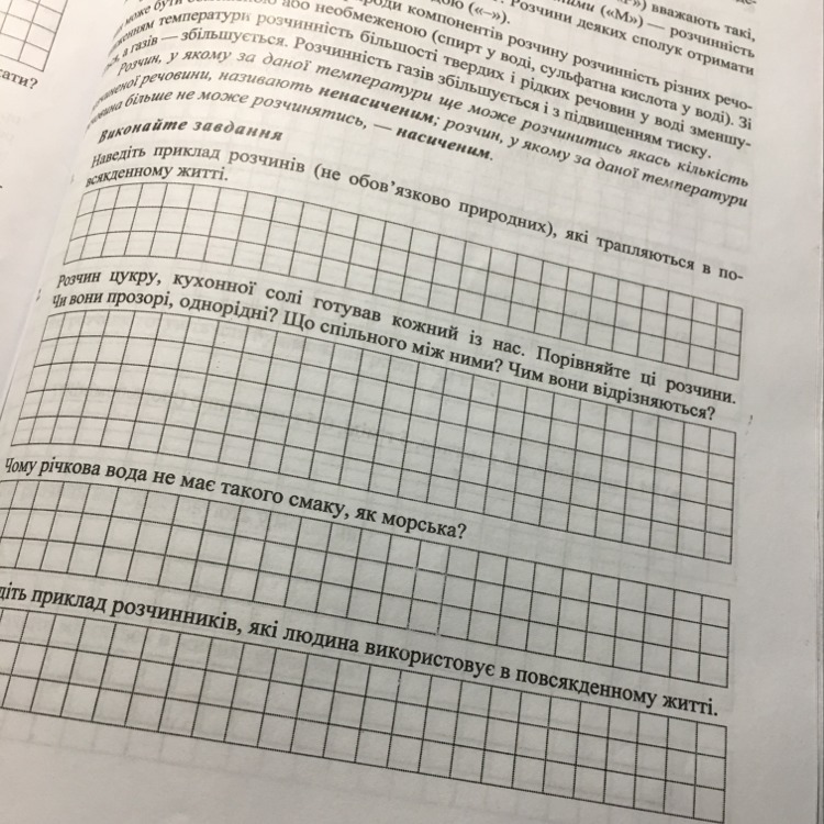 растворы: сахара, соли, кислот, щелочей, уксуса, соды, растворы красителей, растворы моющих средств, растворы лекарственных средств, Раствор мела, извести.