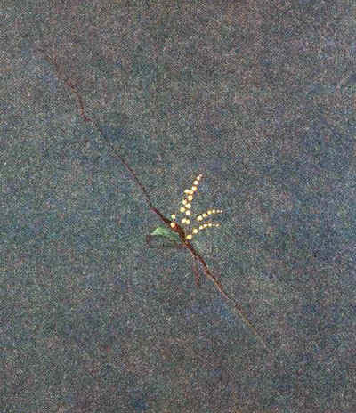 перед собой я вижу очень красивую картинку.На картине показано как из асфальта ,где есть трещина появляется красивый цветок .Я думаю этот цветок ландыш.Он так сверкается как будто от неё вокруг всё сияет.И у неё один листочек появился.Он так старается выйти ,как будто с трудностью пытается ввести.