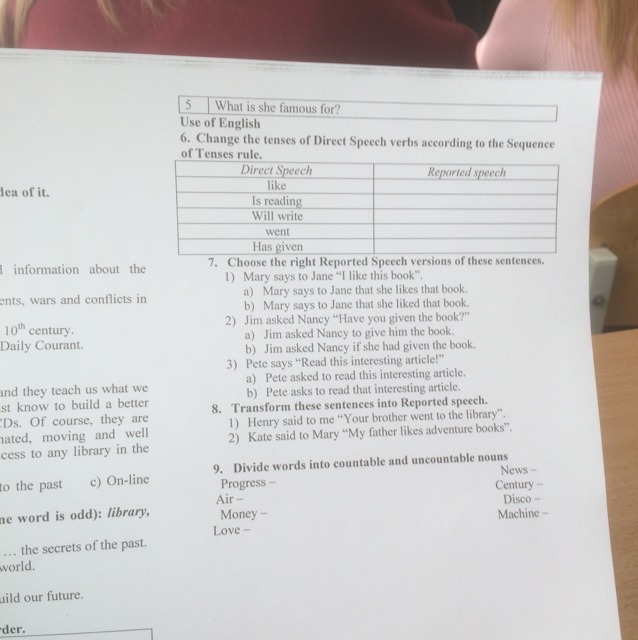2 - Kate said to Mary that her father liked adventure books.