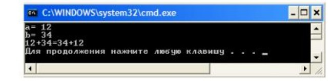 Запрашивает с клавиатуры два целых числа, и выводит на экран сумму данных чисел в прямом и обратном порядке: