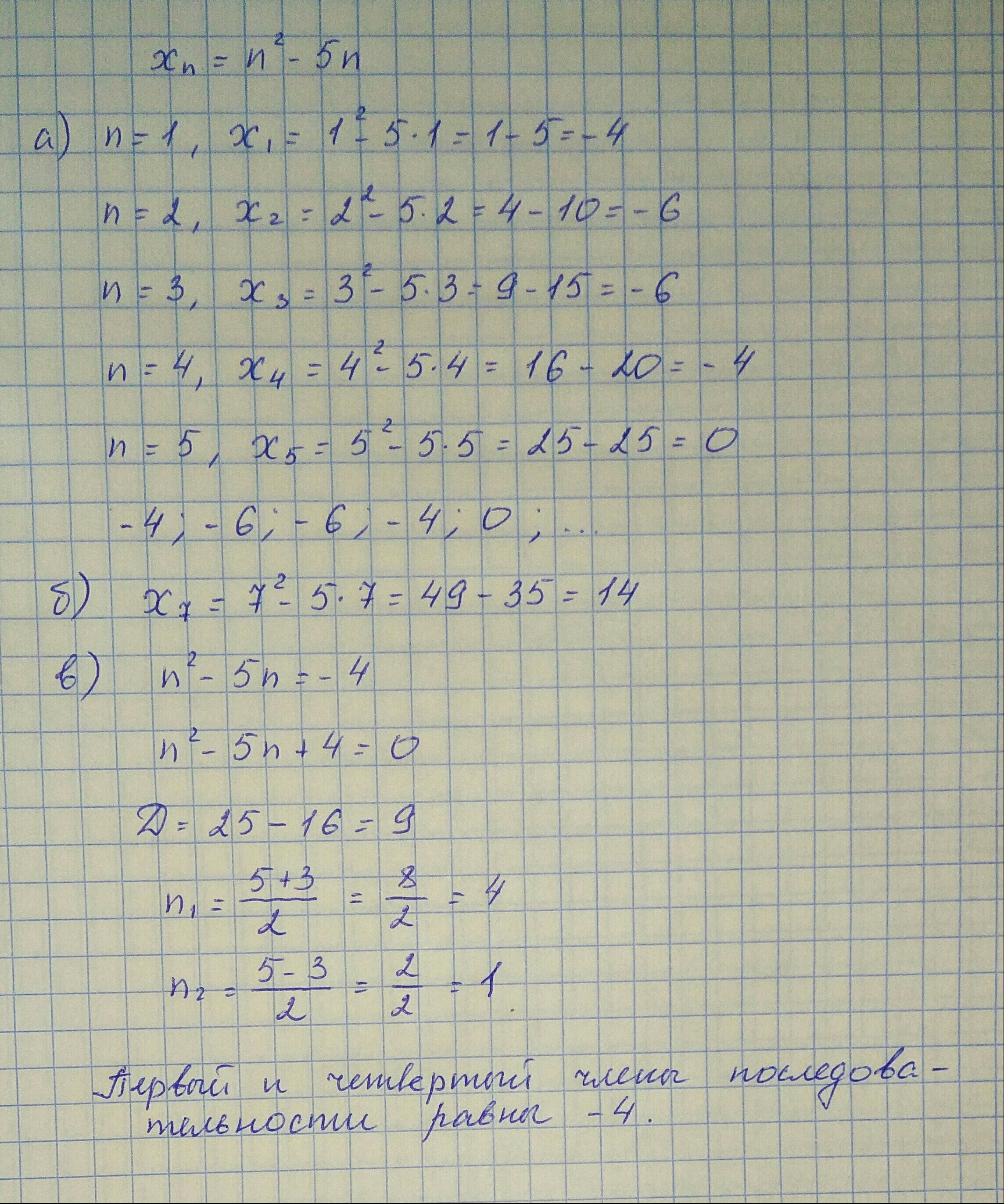 Последовательность (Хn) задана формулой n-го члена Xn=n² -5n