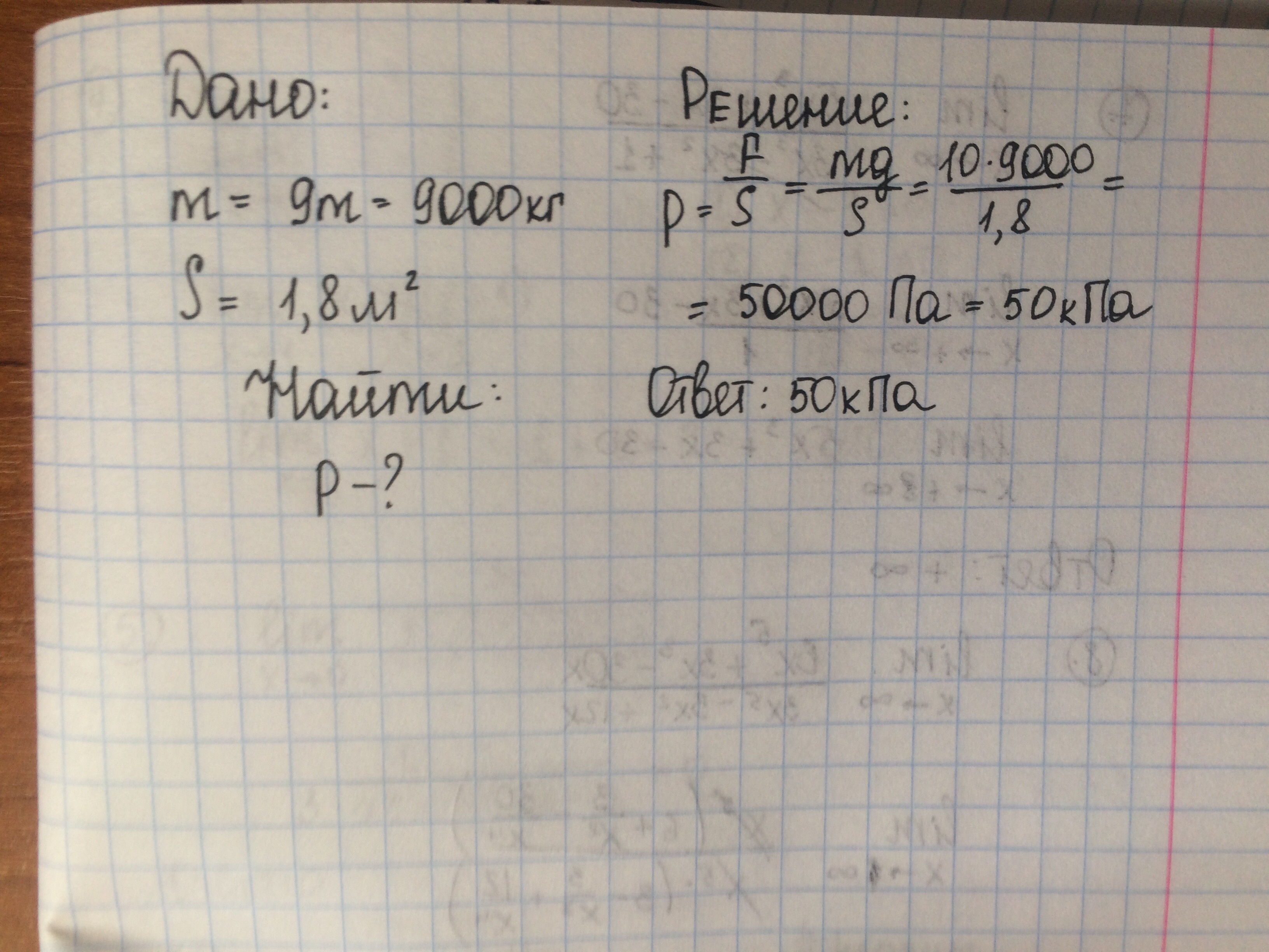 Какое давление оказывает на почву танк массой 9 т, если общая площать гусениц 1,8 м2?