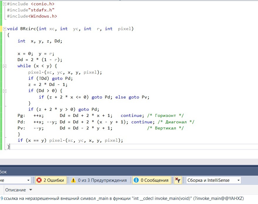 Pd: ++x; --y; Dd = Dd + 2 * (x - y + 1); continue; /* Диагонал */
