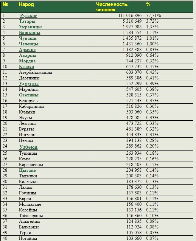 Россия является многонациональным государством, что отражено также в её конституции. На её территории проживает более 190 народов