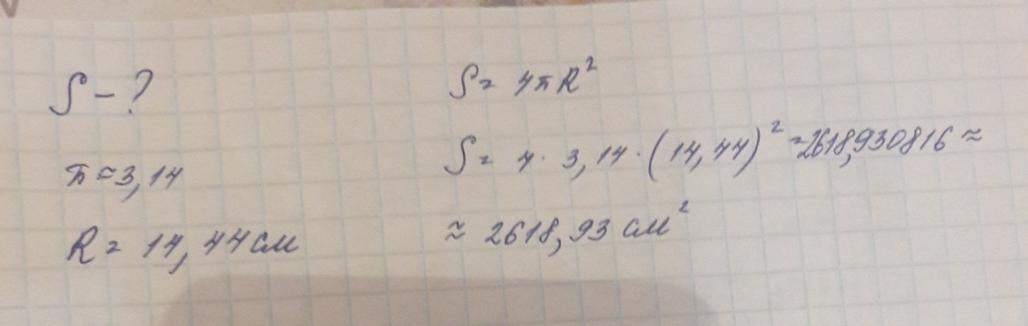 Определи площадь поверхности S этой сферы (с точностью до сотых).