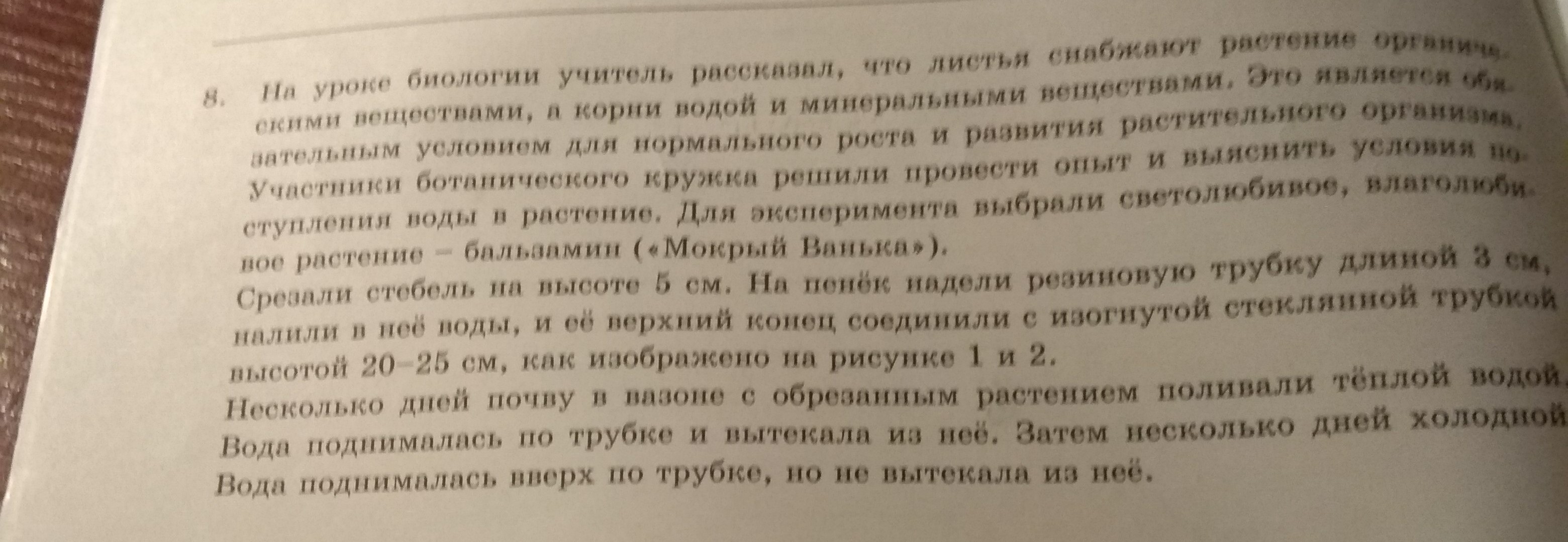 1)Влияние какого условия на всасывание корнем воды из почвы демонстрирует опыт?