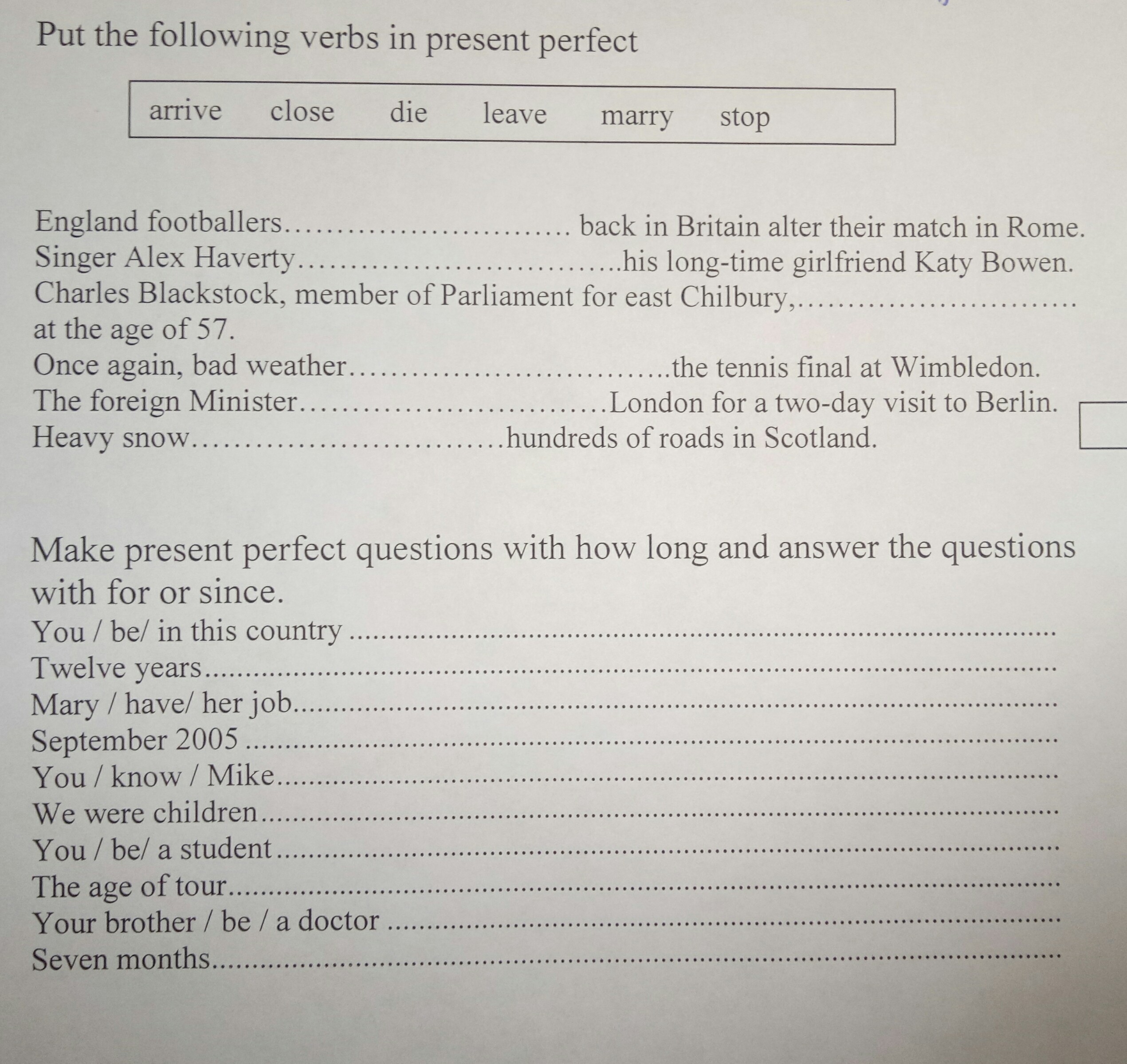 Там получается ответы на вопросы с for или since, можно самому придумать любой ответ исходя из вопроса