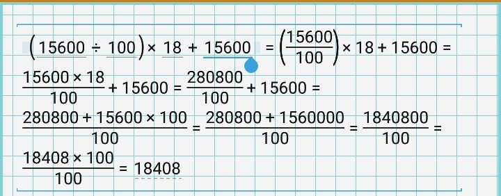 легче так 15600:100=156 156*18=2808 и 2808+15600=18408