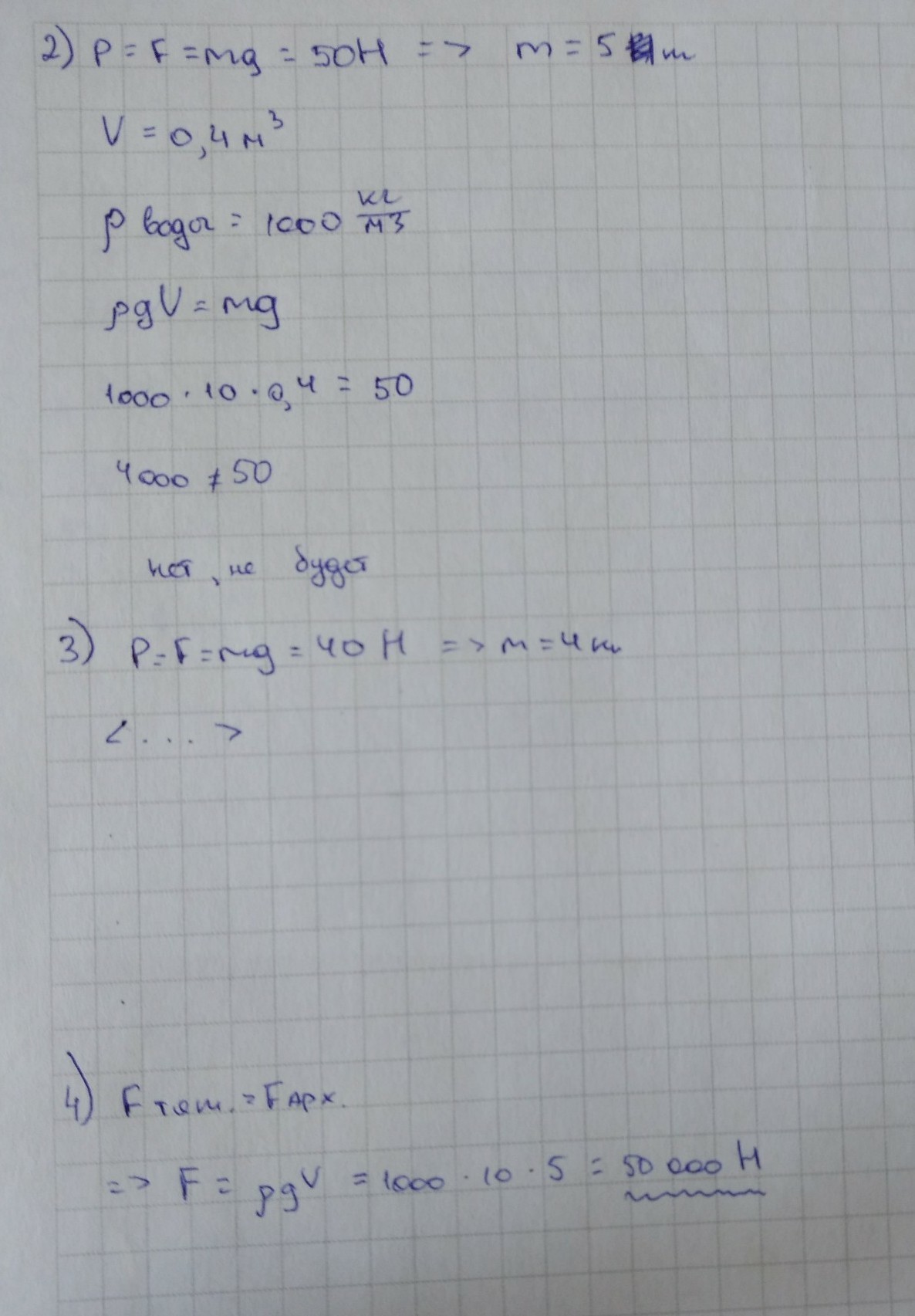 1) Условие плавания тел: Fархимеда=Fтяжести