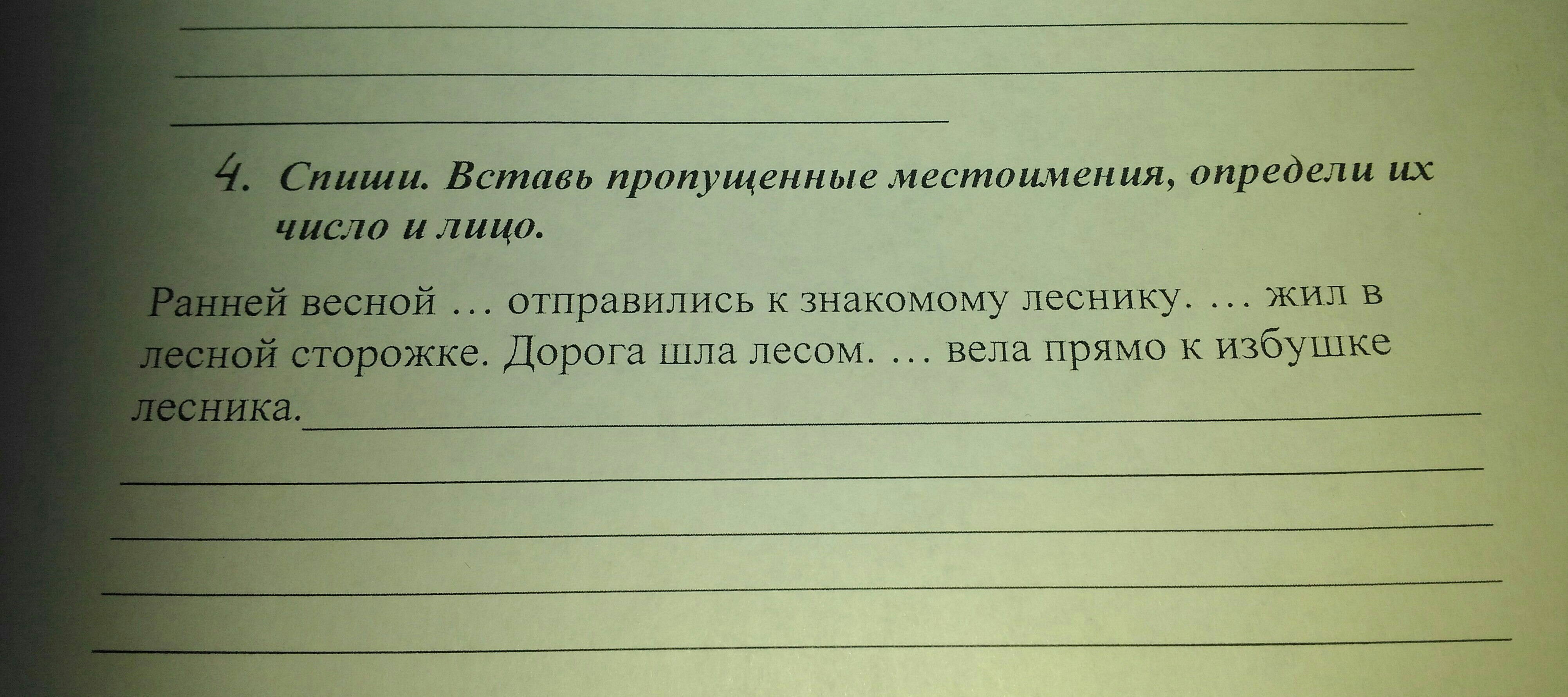 ранней весной МЫ отправились к знакомому леснику. ОН жил в лесной сторожке. доррга шла лесом. ОНА вела прямо к избушке лесника.