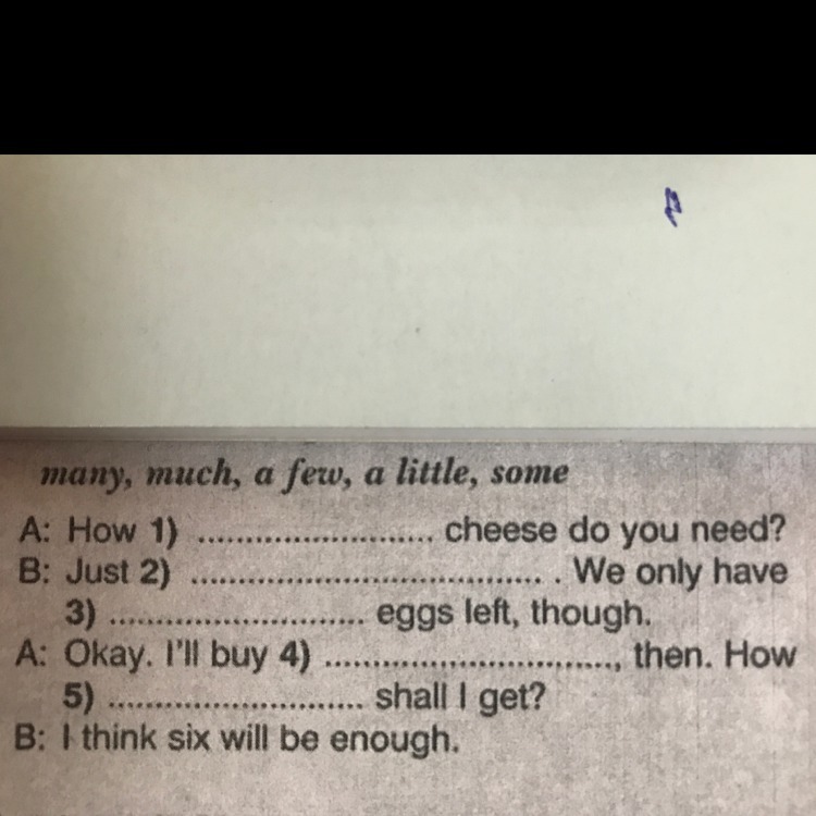 1 much 2 a little 3 a few 4 some 5 many.................................