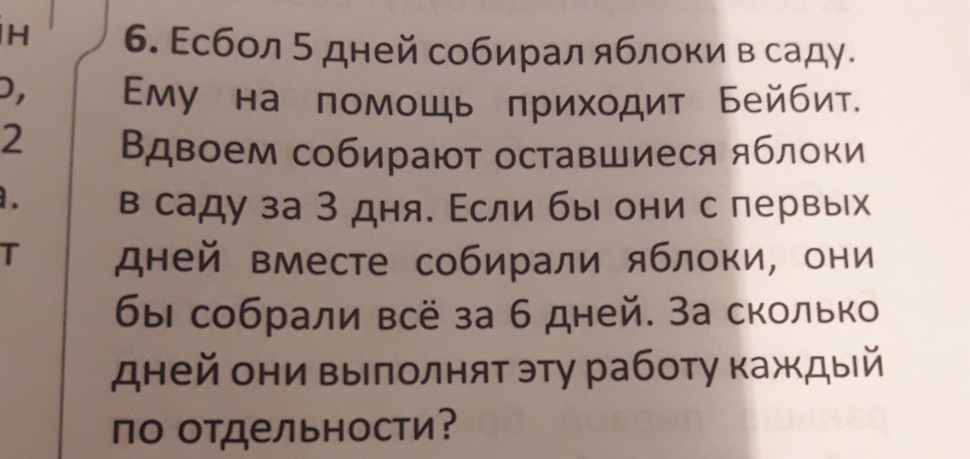 Пусть Есбол выполнит всю работу за х дней, а Бейбит выполнит работу за у дней. Есбол за 1 день выполняет 1/х часть работы