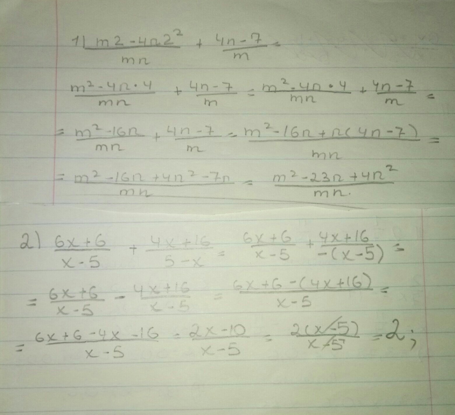 1) числівник m2-4n2( 2 вгорі) знаменник mn+ числівник 4n-7 знаменник m.