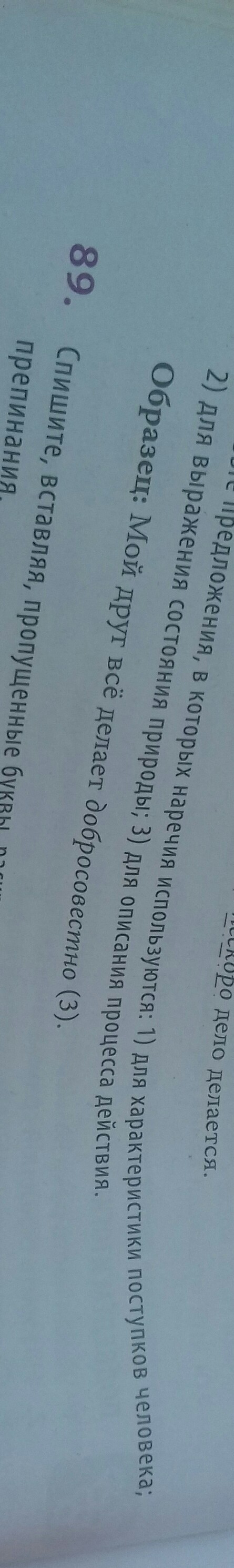88. Составте предлжения,в которых наречия используются:1)для характеристики поступков человека; 2)для выражения состояния природы; 3)для описания процесса действия.