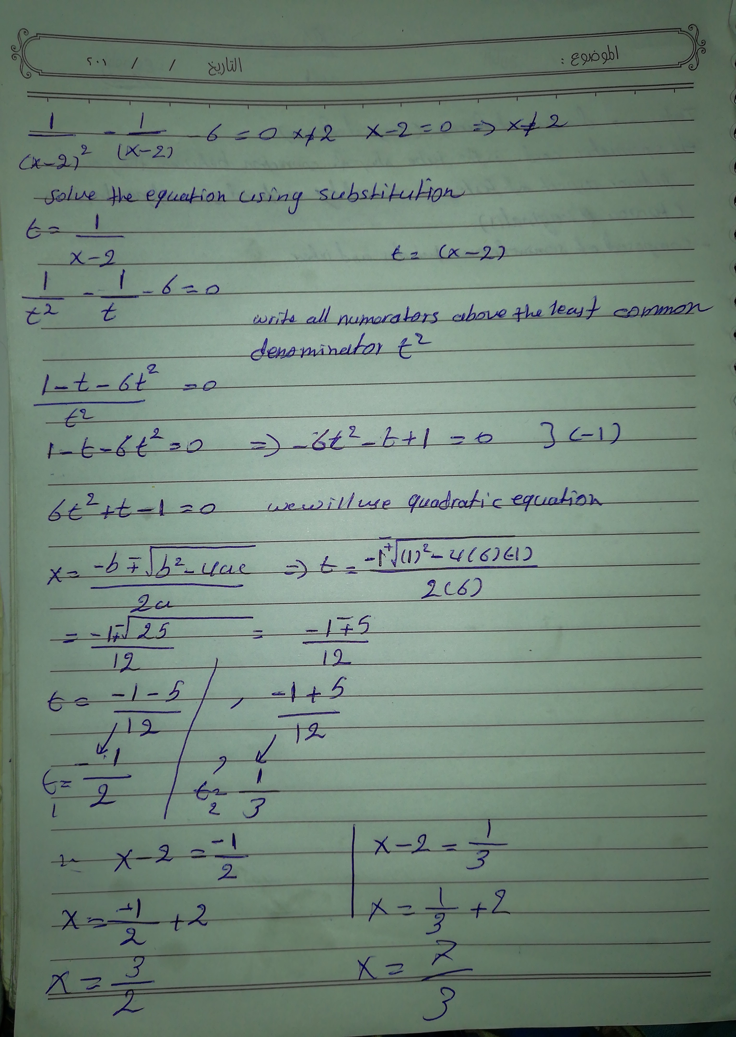 1/(x-2)^2-(x-2)/(x-2)^2-6(x-2)^2/(x-2)^2 =0