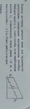 перила лестницы дачного дома для надежности укреплены посередине вертикальным столбом. найдите высоту этого столба,если наибольшая высота относительн земли равна 1,6 м а высота стоа l-1,2 м