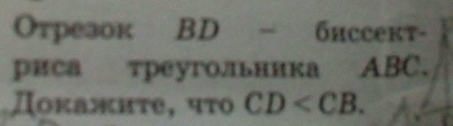 Но АС < СВ + АВ (неравенство треугольника) , отсюда CD < CB, что и требовалось.