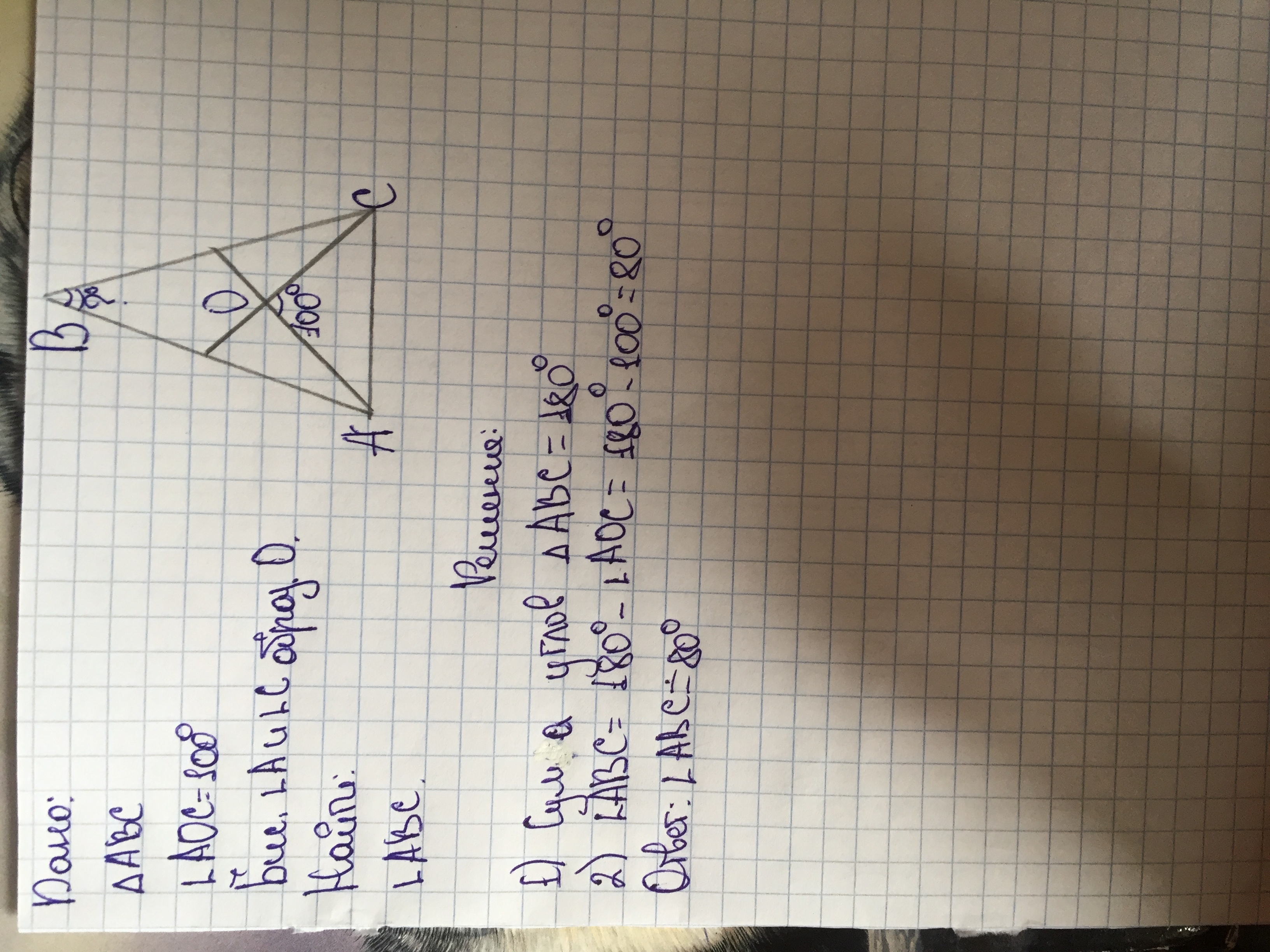 Биссектрисы углов А и С треугольника АВС пересекаются в точке О, угол АОС = 100°. Найти угол АВС.