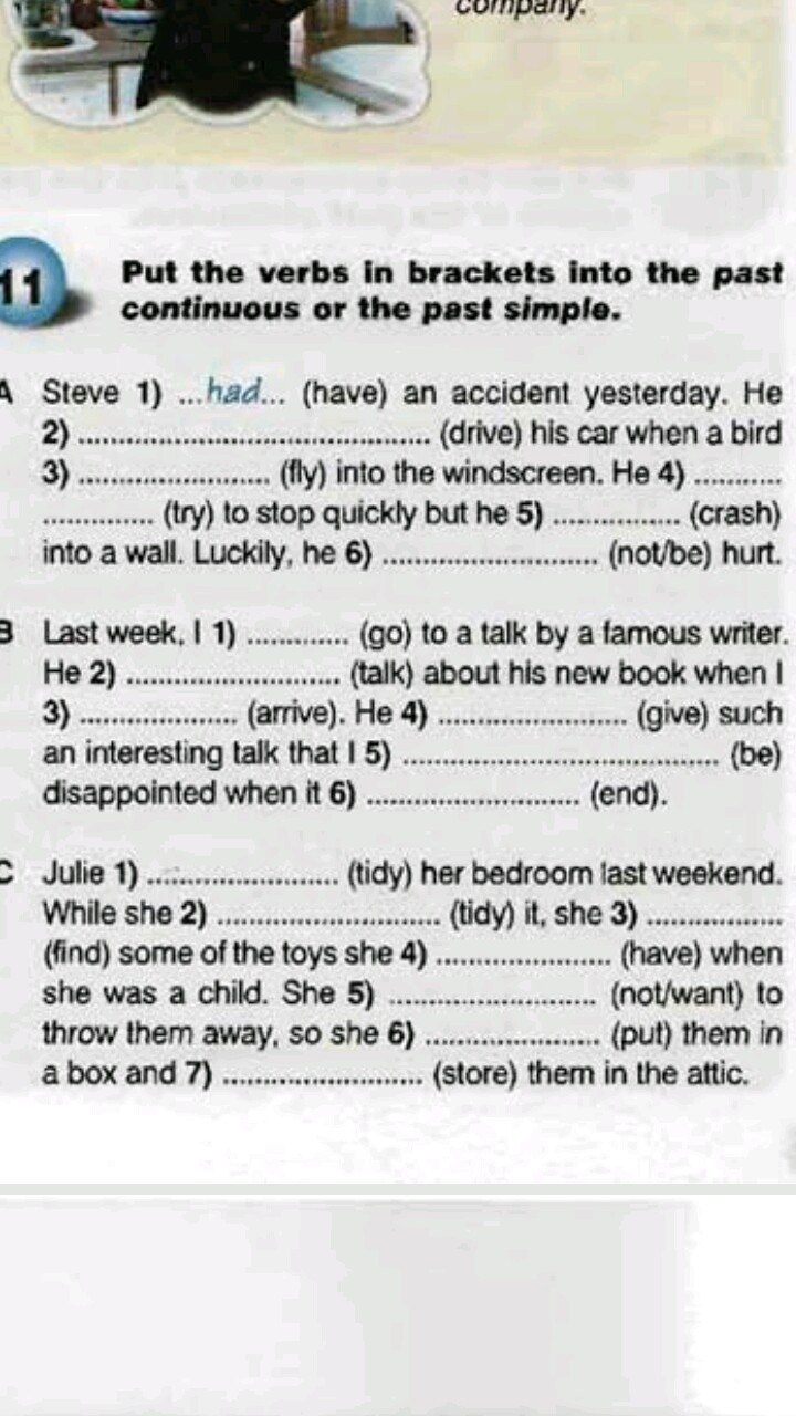 1 tidied 2 was tidying 3 found 4 had 5 didn’t want 6 put 7 stored