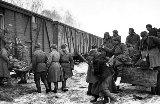 5) Молодому чернявому пареньку (в распахнутой шинели, под которой видна военная форма и замызганной ушанке), который возвращается на фронт после госпиталя, понравилась курносая белобрысая девушка-беженка в демисезонном пальто, резиновых ботиках и берете, встретившаяся с ним у титана с кипятком.