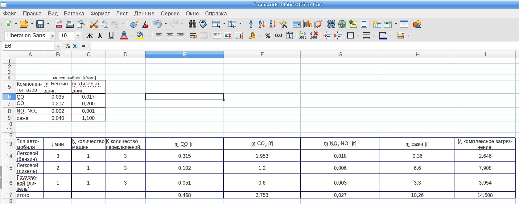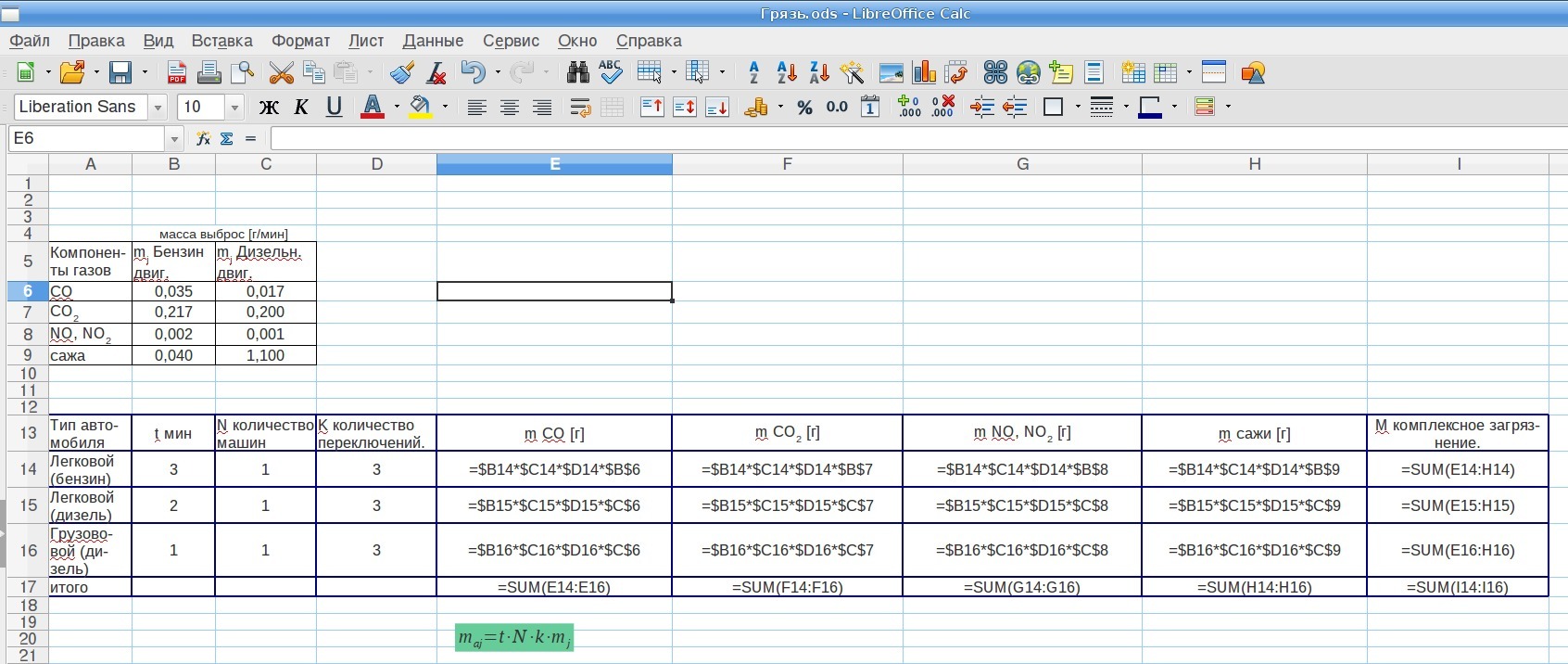 Я так понимаю для вычисления масс отдельных токсичных продуктов для заполнения таблицы, нужно просто раскрыть скобки в вашей формуле подсчёта.