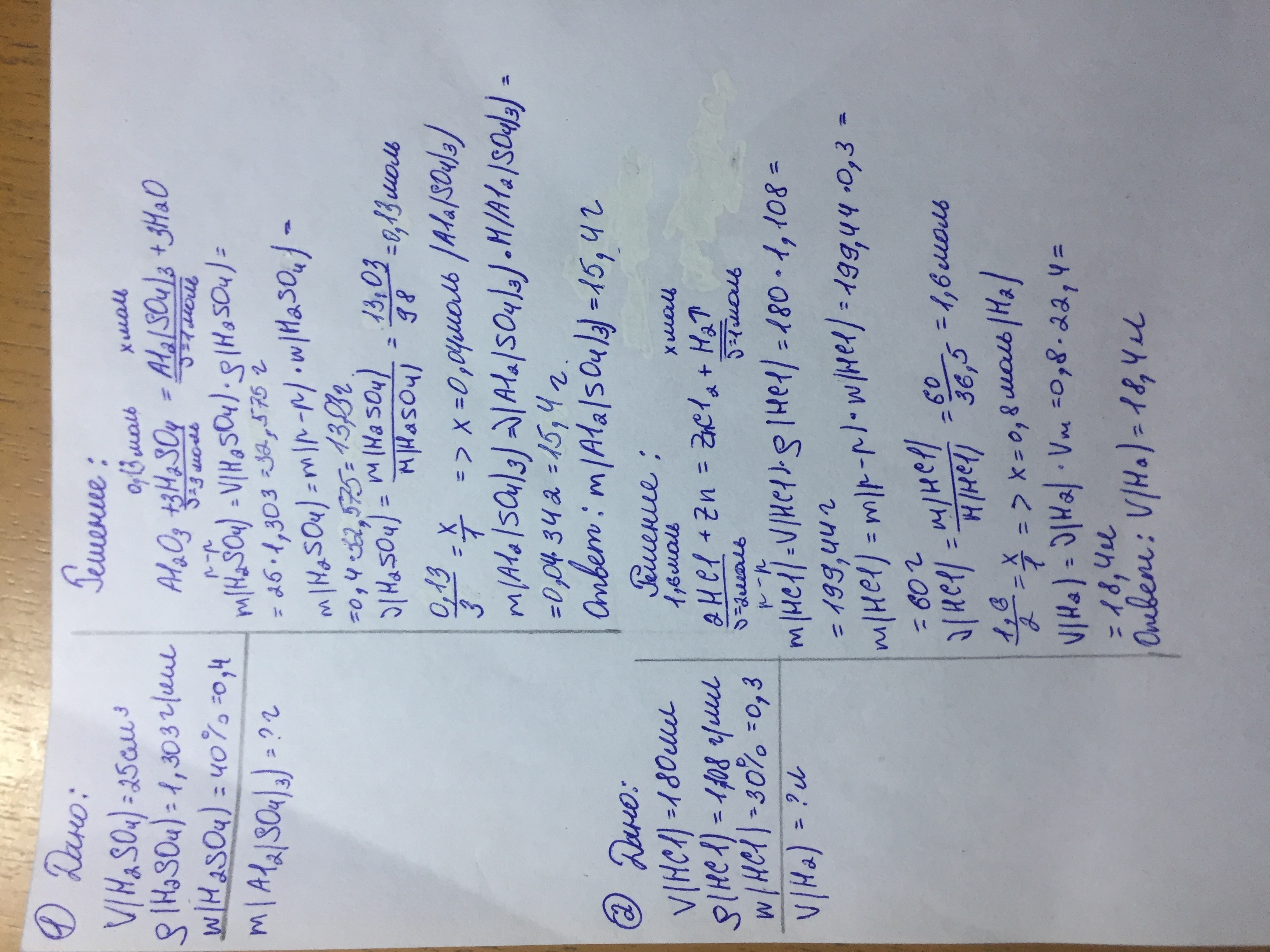 1. Оксид алюминия прореагировал с раствором серной кислоты объёмом 25 см3 (ρ=1,303 г/мл) и массовой долей кислоты 40%. Определить массу образовавшейся соли.