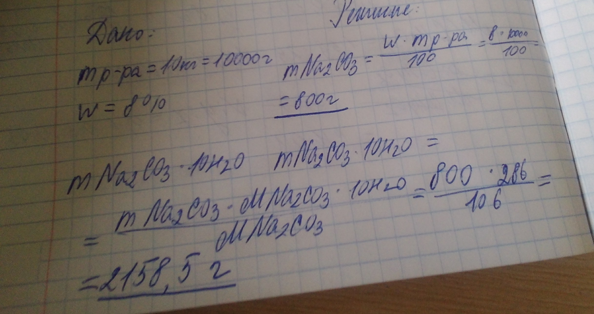 Какая масса Na2CO3 × 10H2O потребуется для приготовления 10 кг моющего раствора с массовой долей Na2CO3 (8%)?