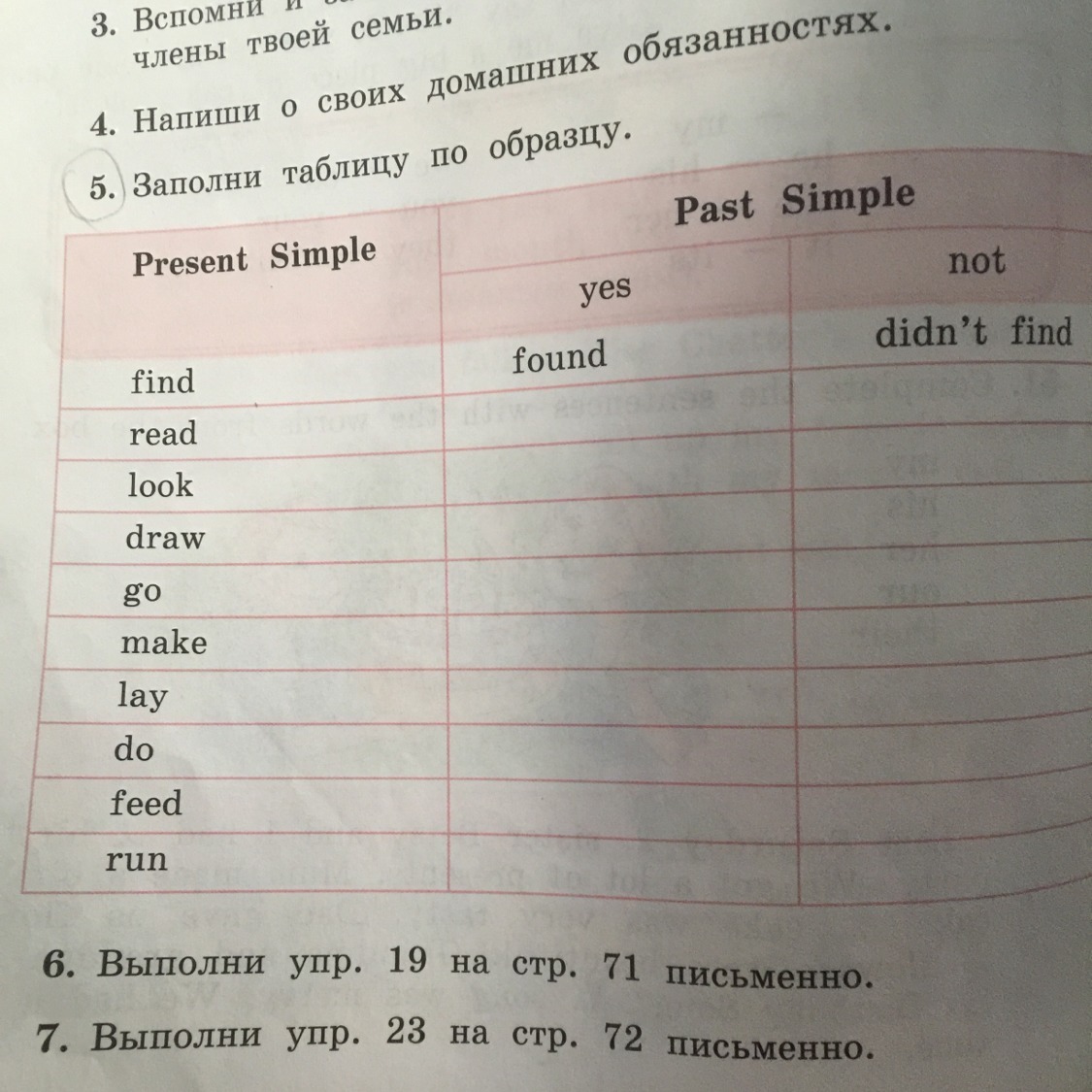 Pr. Simple | Past Simple (Yes) | Past Simple (No)