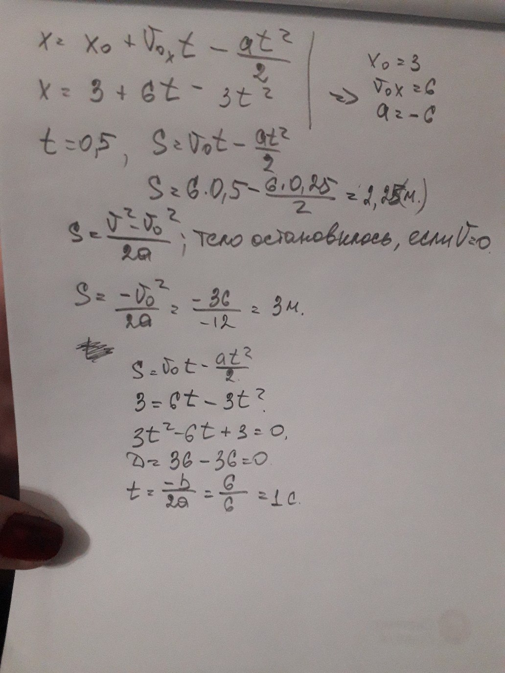 Движение тела описывается уравнением x=3+6t-3t2 Охарактеризуйте движение этого тела.
