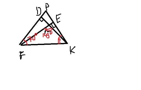 Высоты FE и КD треугольника FPK пересекаются в точке М.Найдите угол PKF, если угол FMK=143°, а угол PFK=70