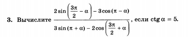 frac{2Sin( frac{3 pi }{2}- alpha )-3Cos( pi - alpha ) }{3Sin( pi + alpha )-2Cos( frac{3 pi }{2} + alpha )} = frac{-2Cos alpha +3Cos alpha }{-3Sin alpha -2Sin alpha } = frac{Cos alpha }{-5Sin alpha }=-0,2Ctg alpha=  =-0,2*5=-1