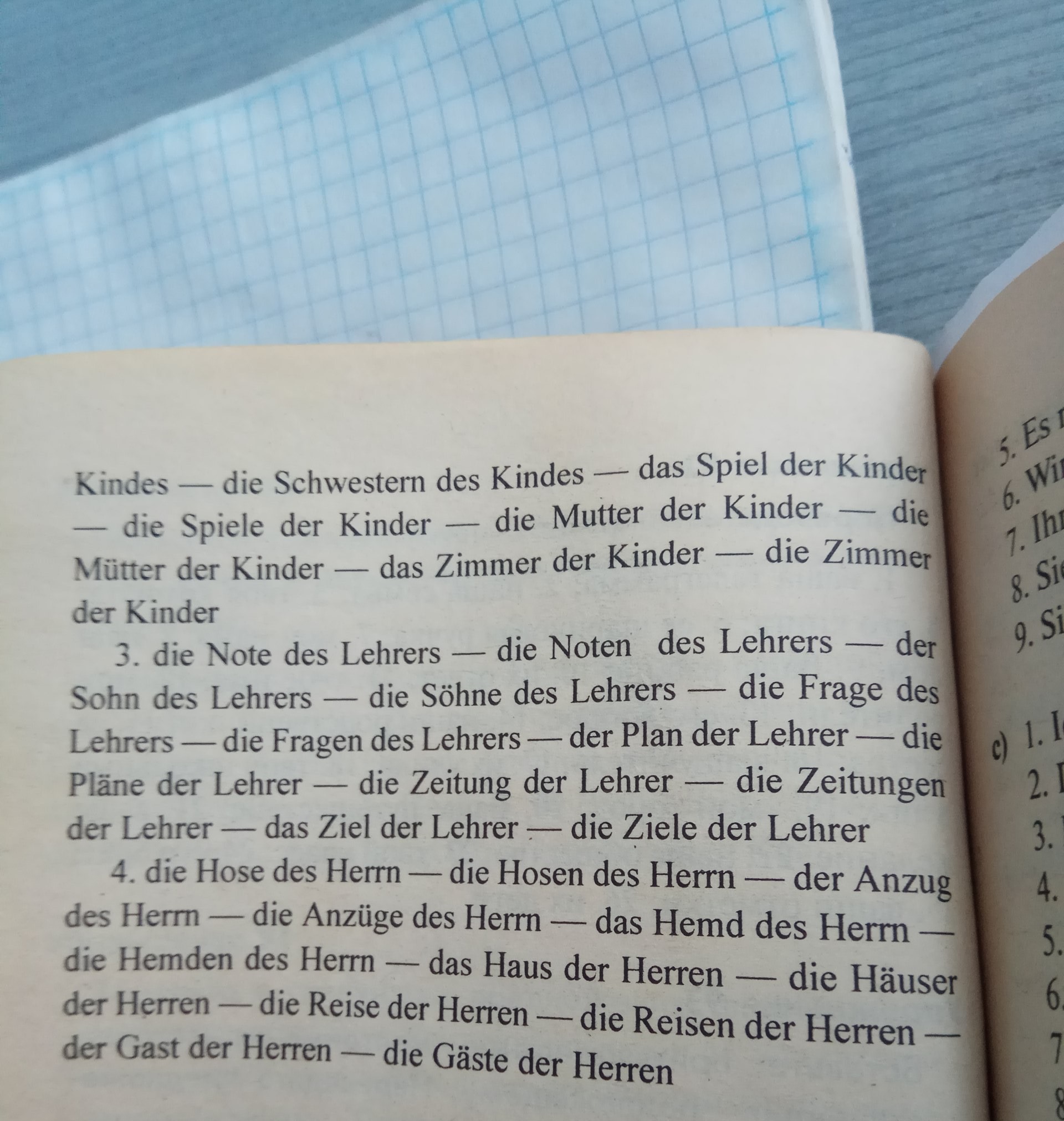 Seine Hose - seine Hosen - sein Anzug - seine Anzüge - sein Hemd - seine Hemden - ihr Haus - ihre Häuser - ihre Reise - ihre Reisen - ihr Gast - ihre Gäste.