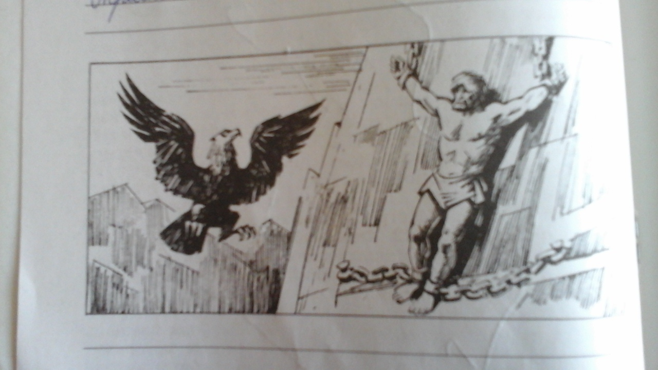 Прикованный Прометей был обречён на непрекращающиеся мучения — вновь и вновь прилетавший орёл выклёвывал его печень[* 3], которая у него, бессмертного, снова отрастала. Эти муки длились в течение всего героического века