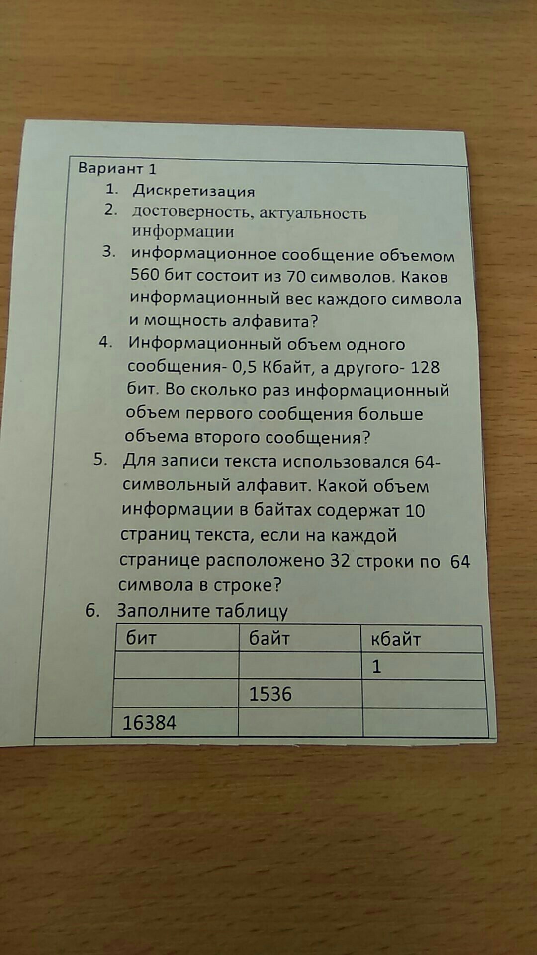 6. 8192 бит = 1024 байт = 1 кбайт.