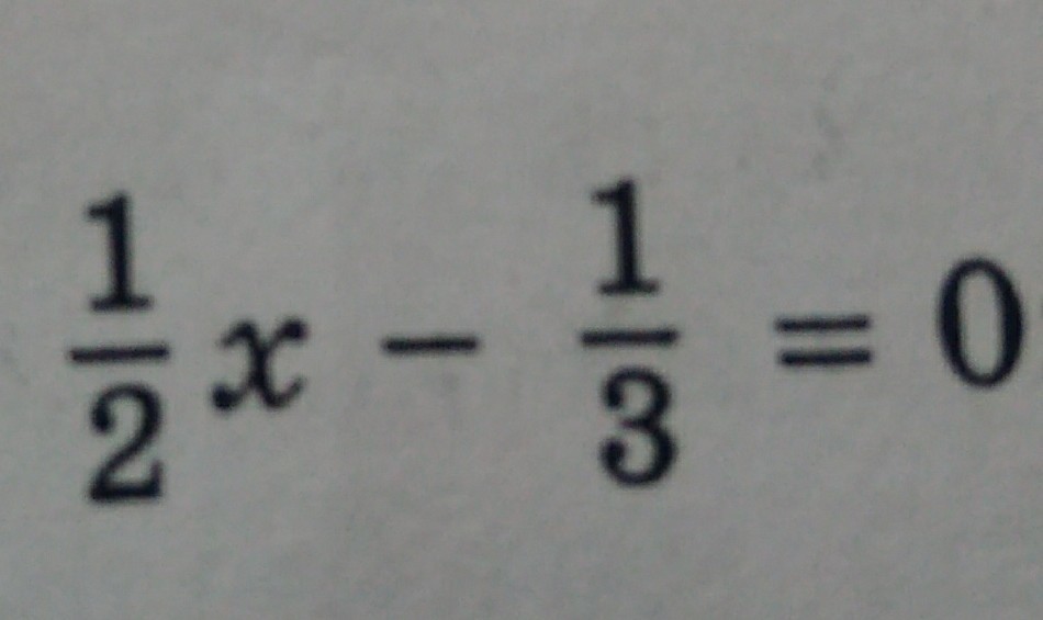 frac{1}{2} x -  frac{1}{3}  = 0 \  frac{1}{2} x =  frac{1}{3}  \ x =  frac{1}{3}  div  frac{1}{2 }  \ x =  frac{2}{3}