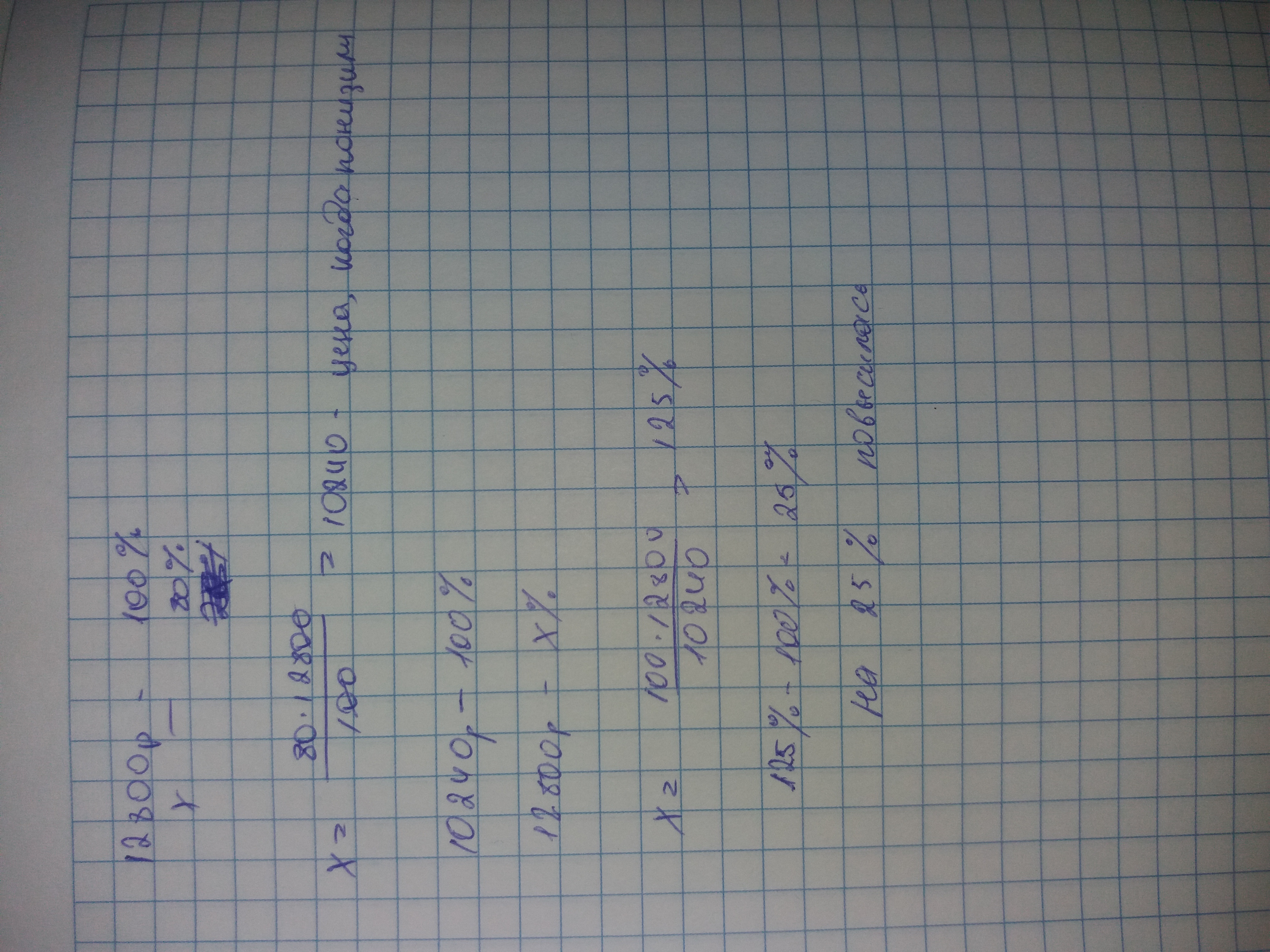 2) 12.800 - 2560 = 10240 руб стало стоить