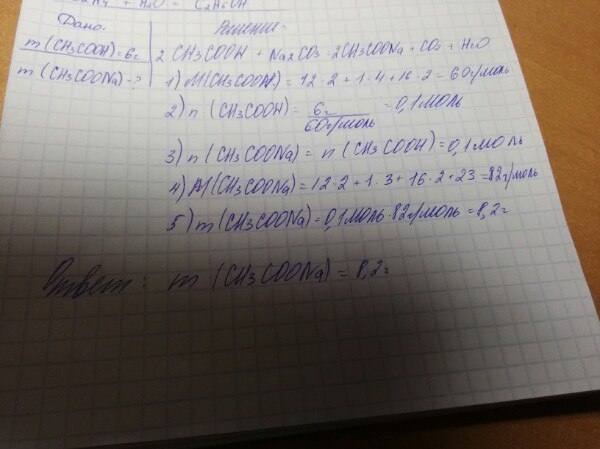 найти массу ацетата натрия который образуется при взаимодействие 6 г уксусной кислоты с натрий нарбонат