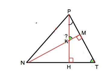 Высоты остроугольного треугольника NPT, проведенные из вершин N и P, пересекаются в точке K, угол T= 56 градусов. Найдите угол NKP