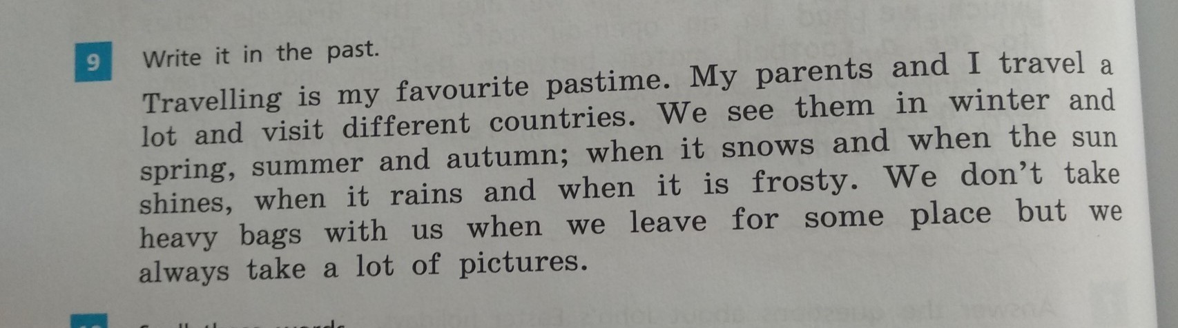 I and my family like travel! We travel all year round.We was in many countries.There was cold,rainy,sunny,frosty.